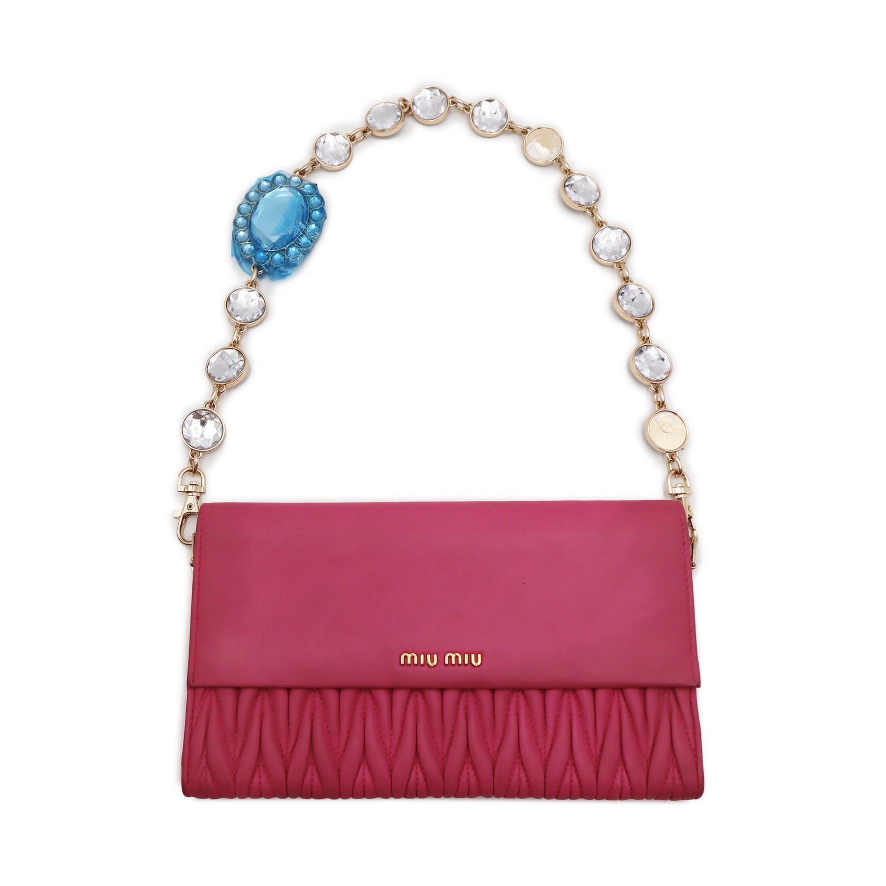 Miu Miu Matelasse Nappa Crystal Embellished Flap Shoulder Bag