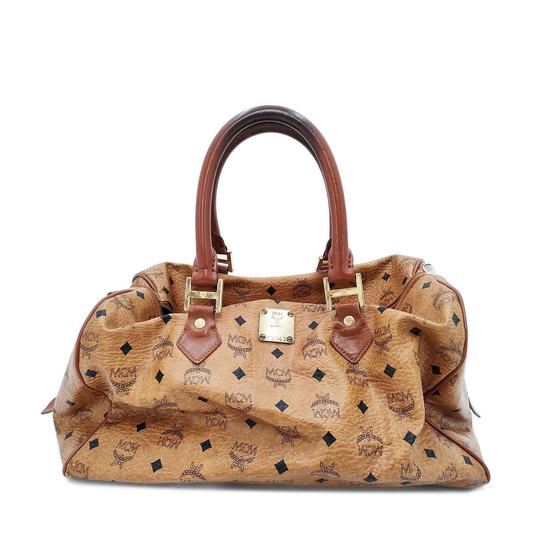 MCM Visetos Canvas Boston Bag