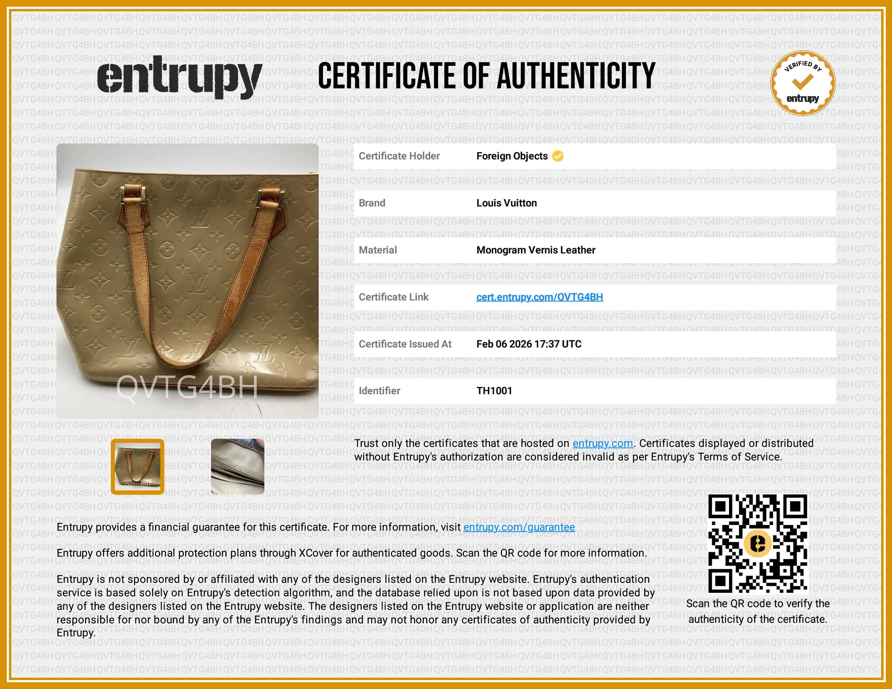 Louis Vuitton Monogram Vernis Houston Tote Bag TH1001