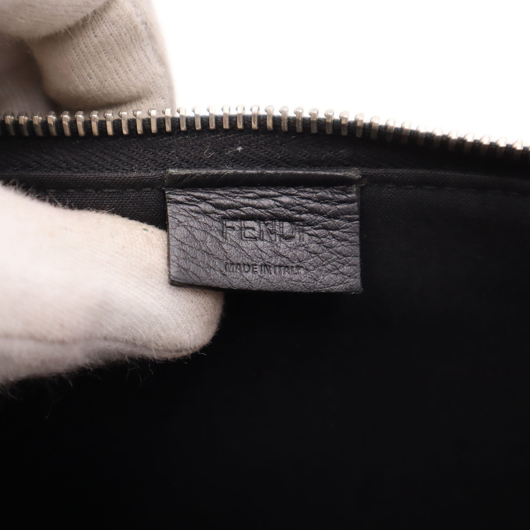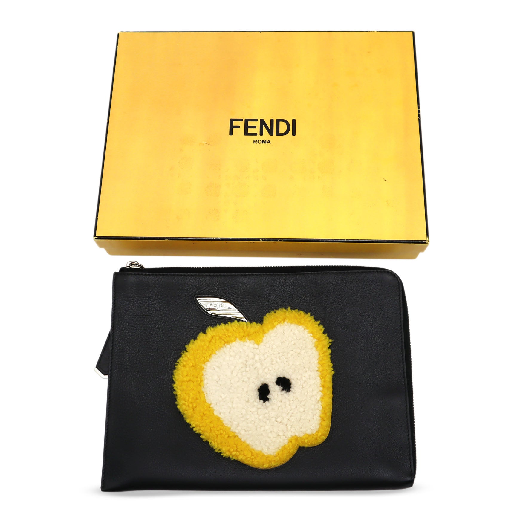 Fendi Leather Shearling Apple Motif Clutch Bag