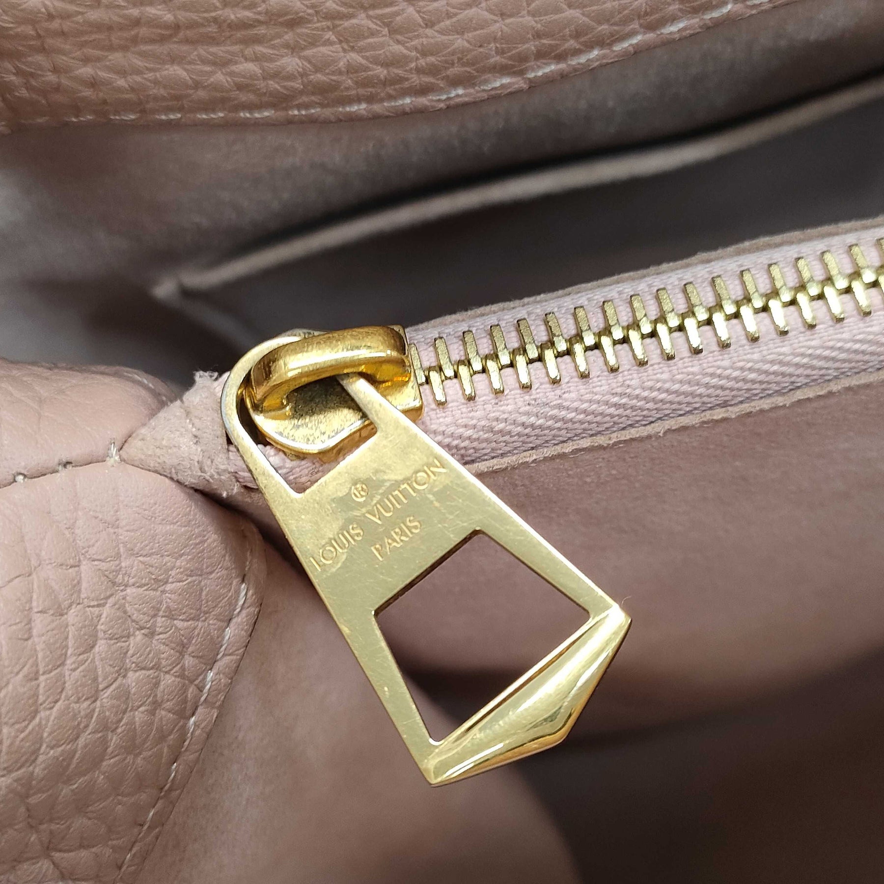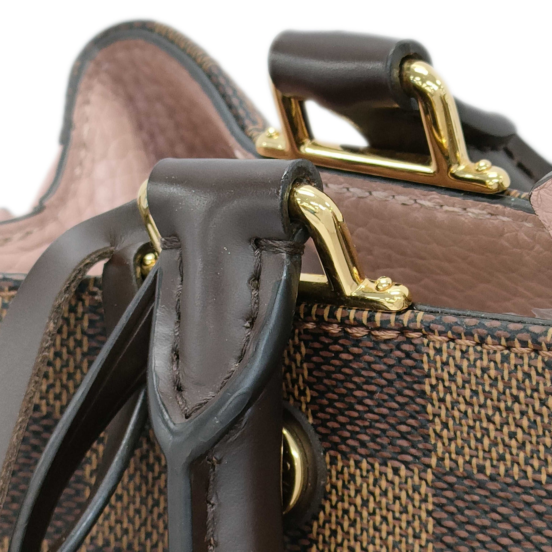 In good condition. Has light wear on the metal fittings and rubbing on the interior. Hardware looks beautiful.