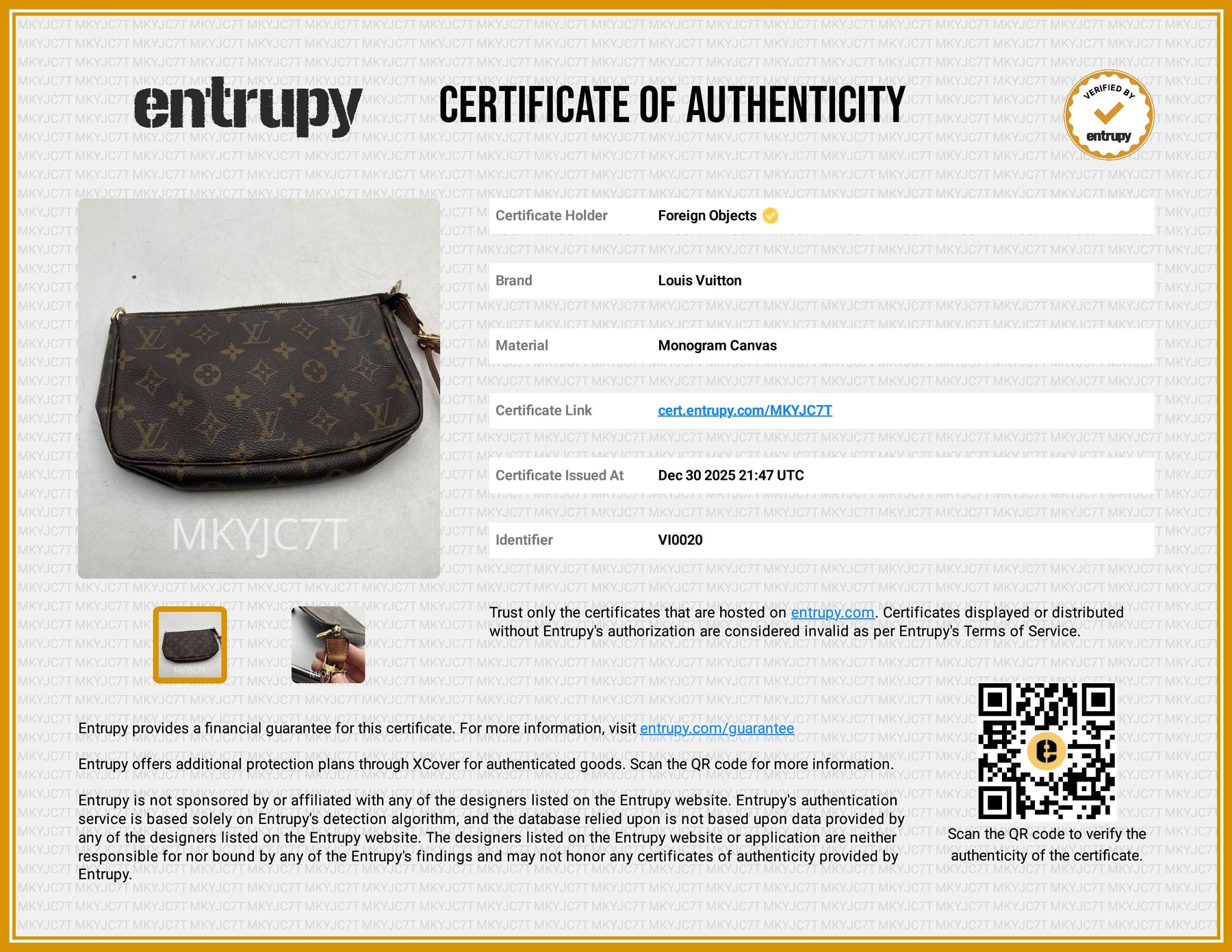 Louis Vuitton Monogram Canvas Pochette Accessories VI0020