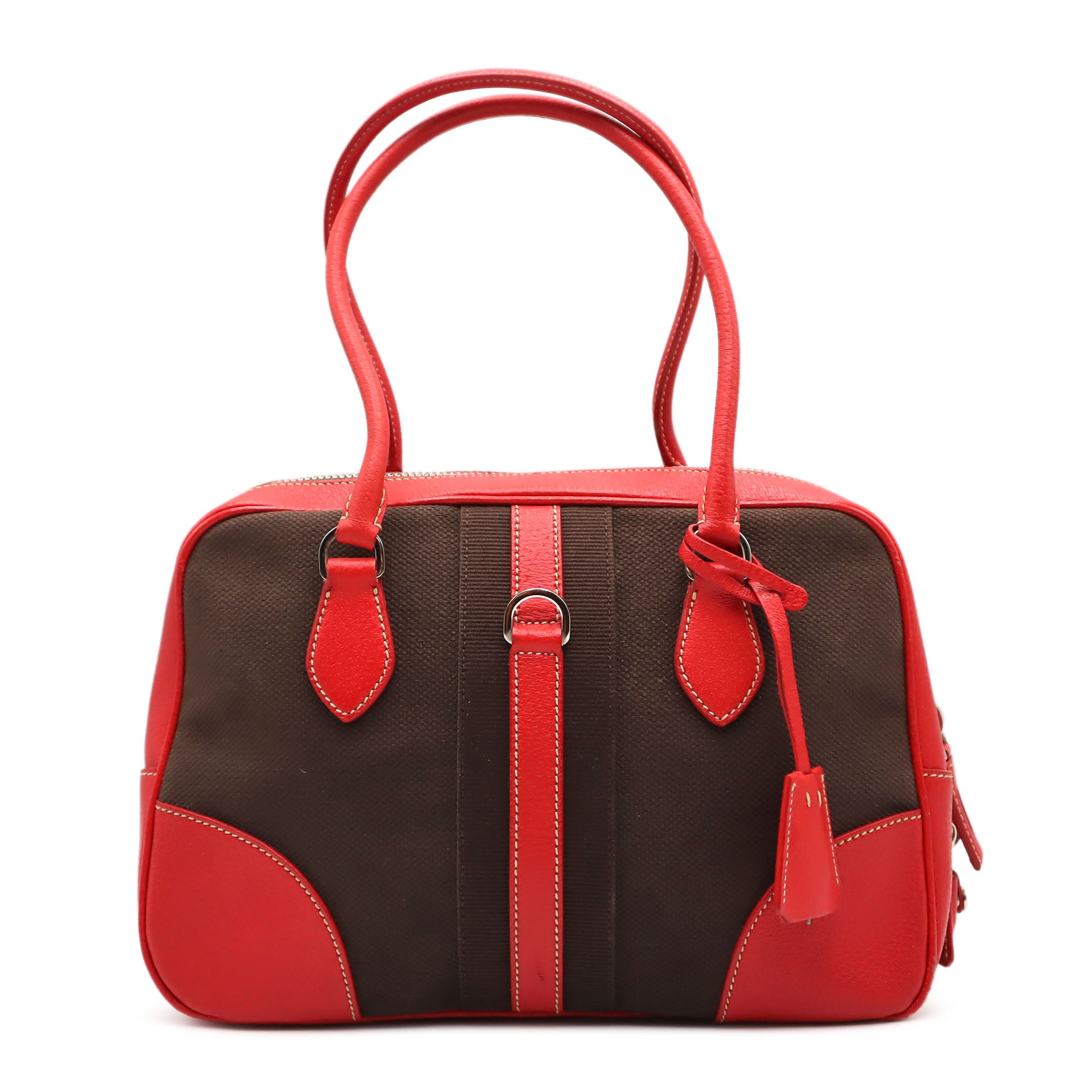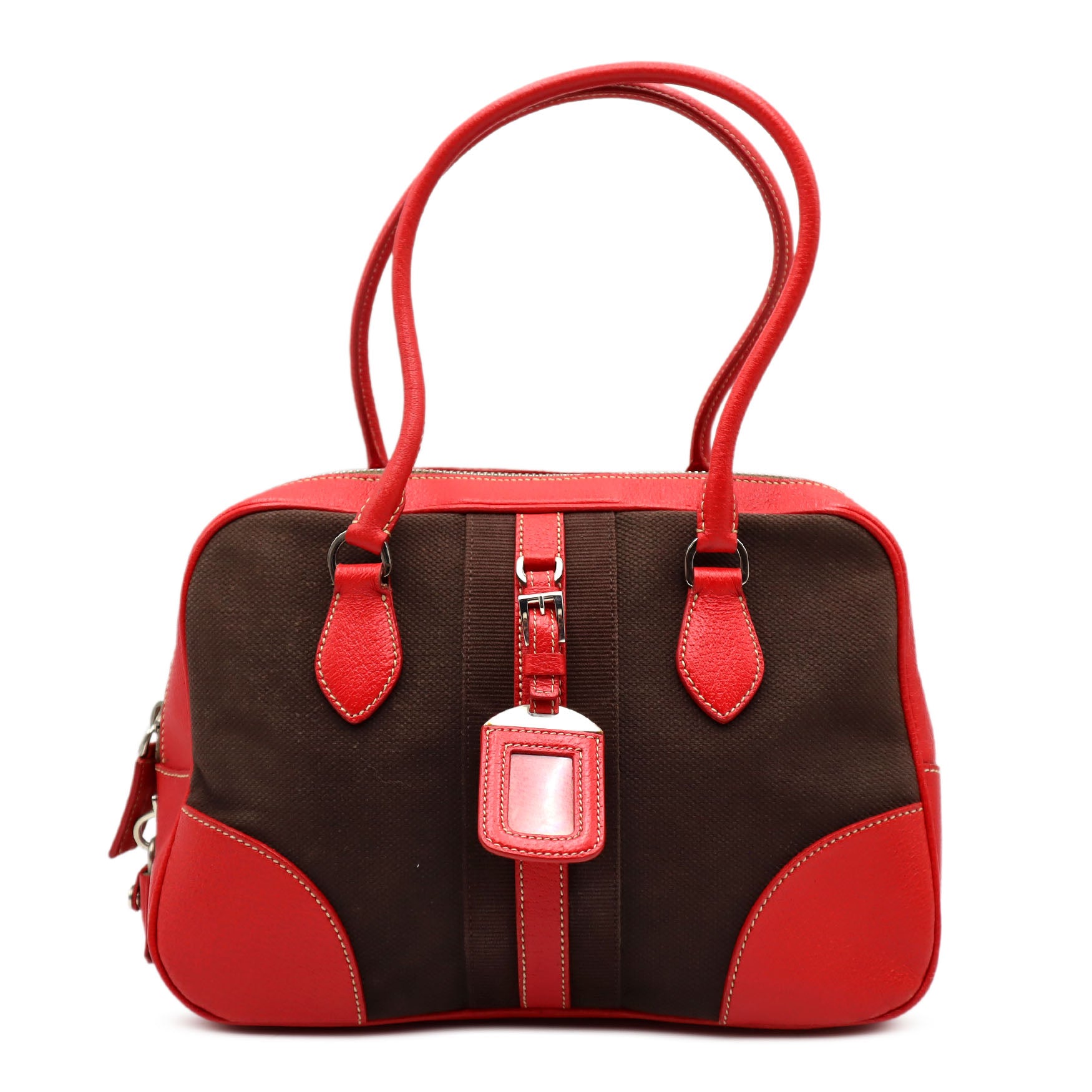 Prada Cinghiale-Trimmed Canapa Bauletto Handbag