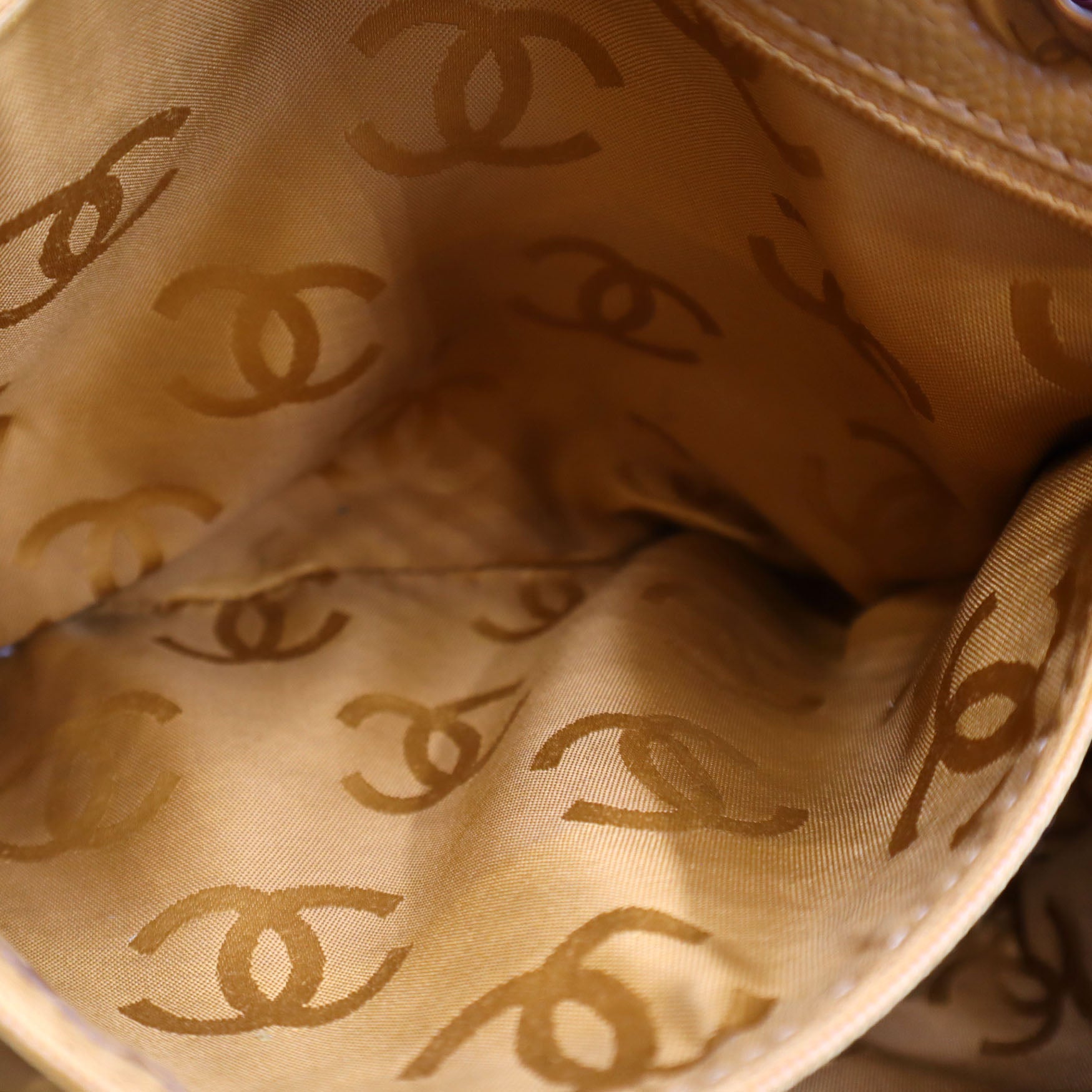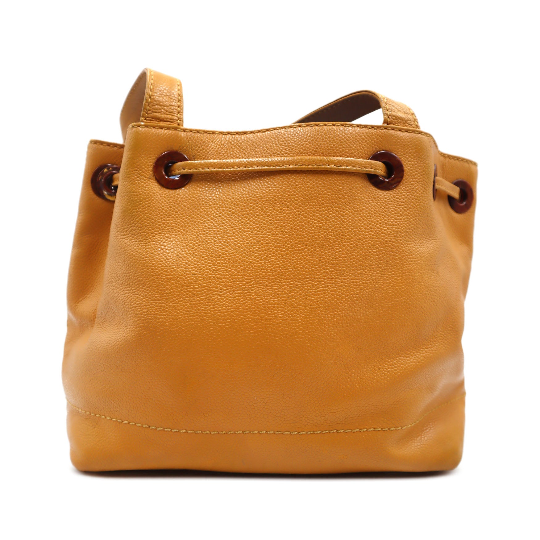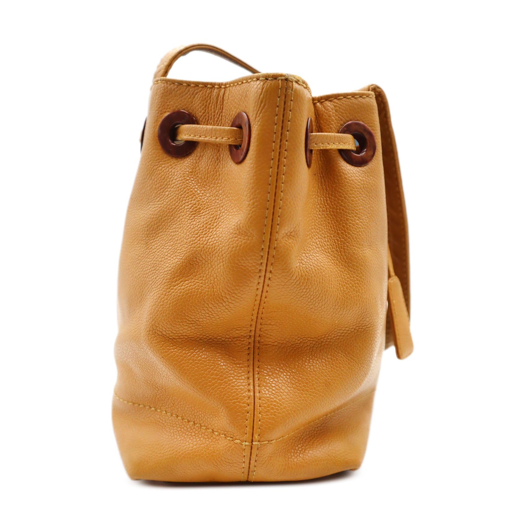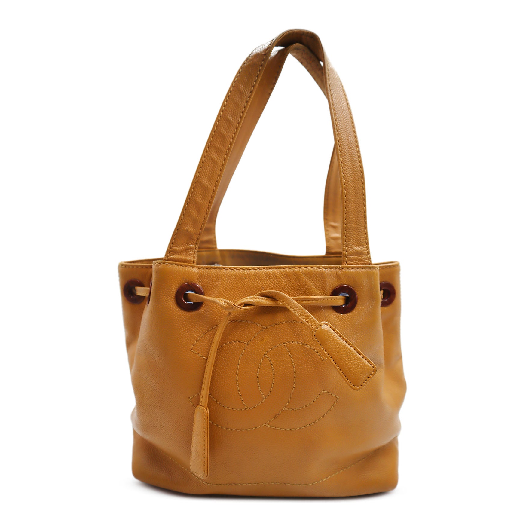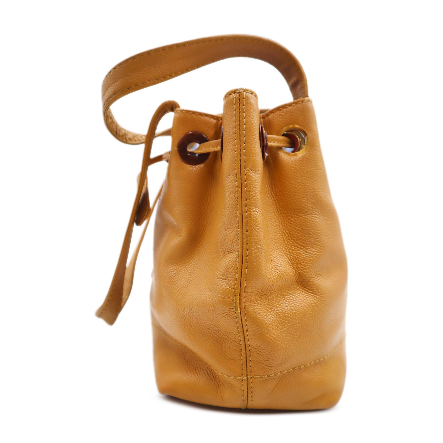 Chanel Caviar Wood CC Drawstring Bucket Bag