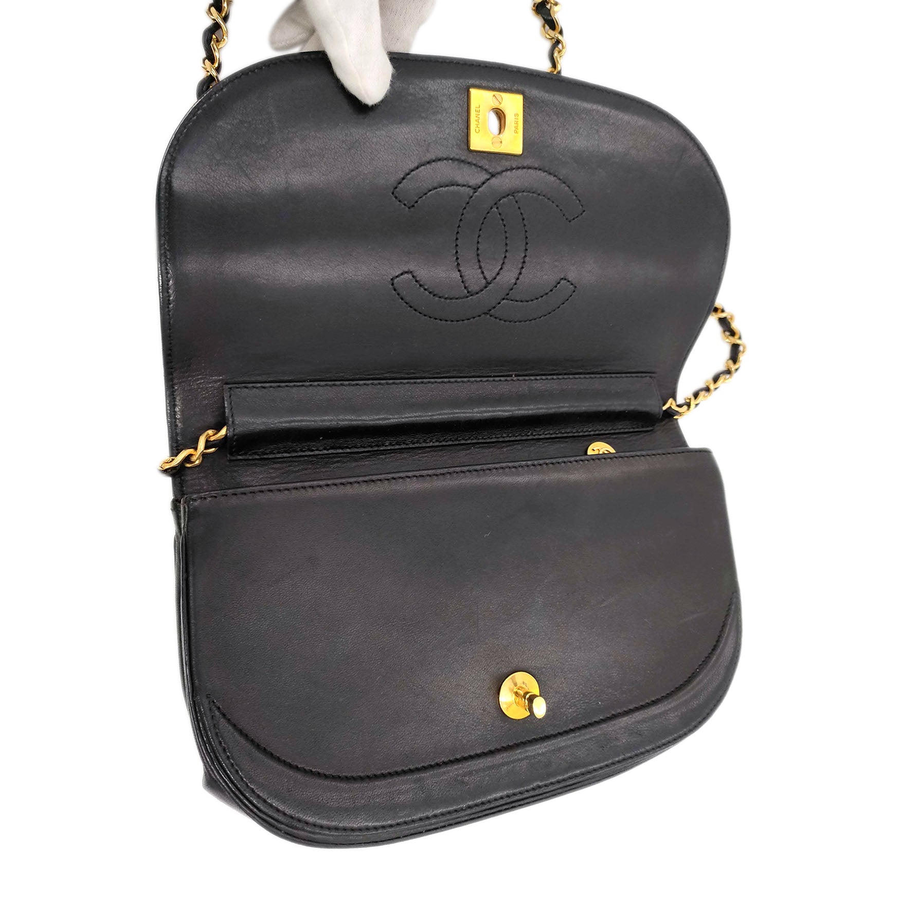 Chanel Quilted Lambskin Half Moon Chain Shoulder Bag