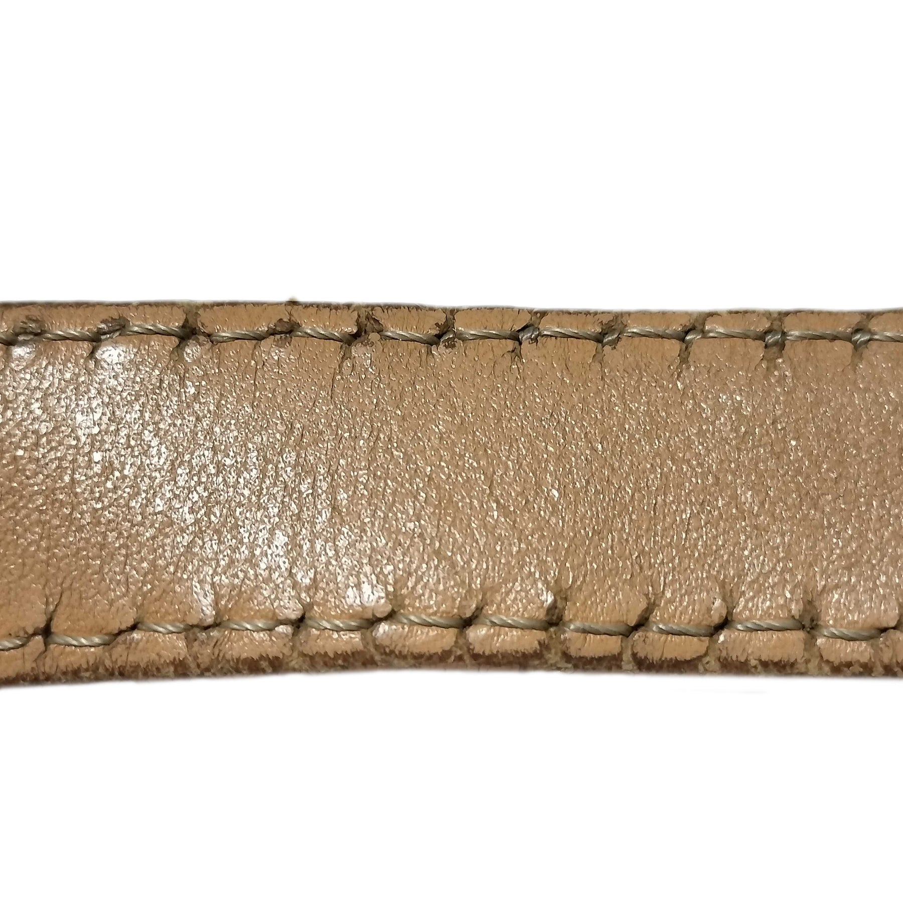 In good condition. Has some wear on the exterior leather accents and on the metal fittings, and light marks on the interior. Hardware looks beautiful.