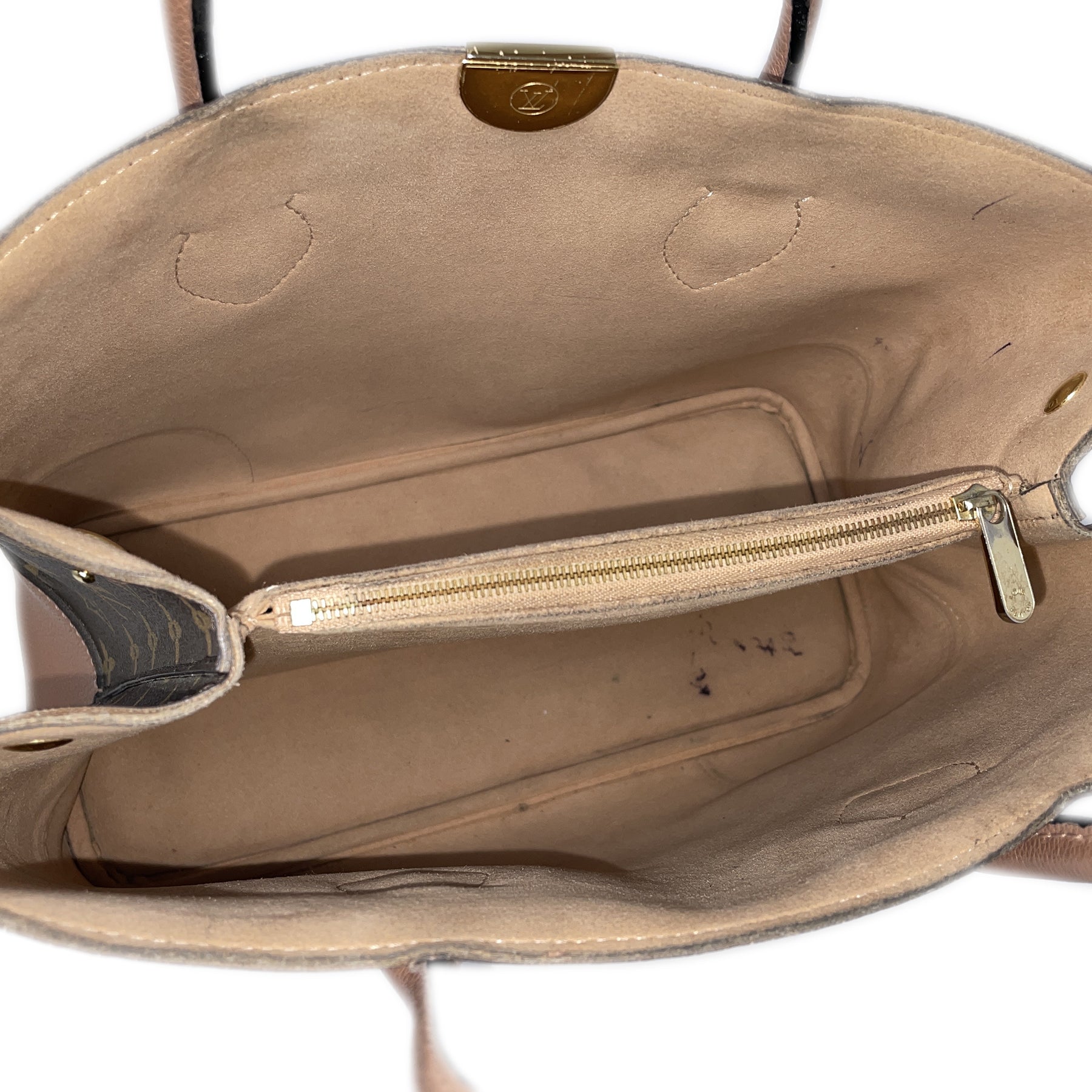 In good condition. Has light rubbing on the exterior leather trim and accents, pen marks and rubbing on the interior. Hardware looks beautiful.