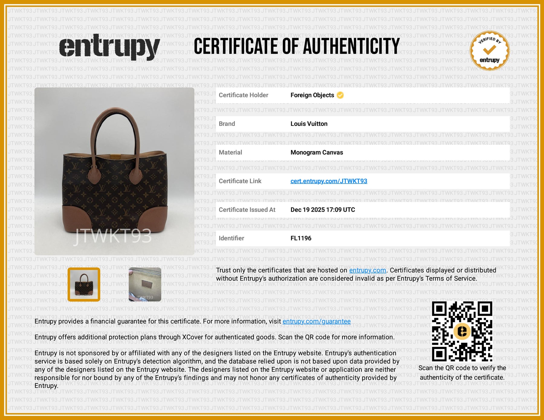 SERIAL NUMBER: FL1196. Includes removable strap.