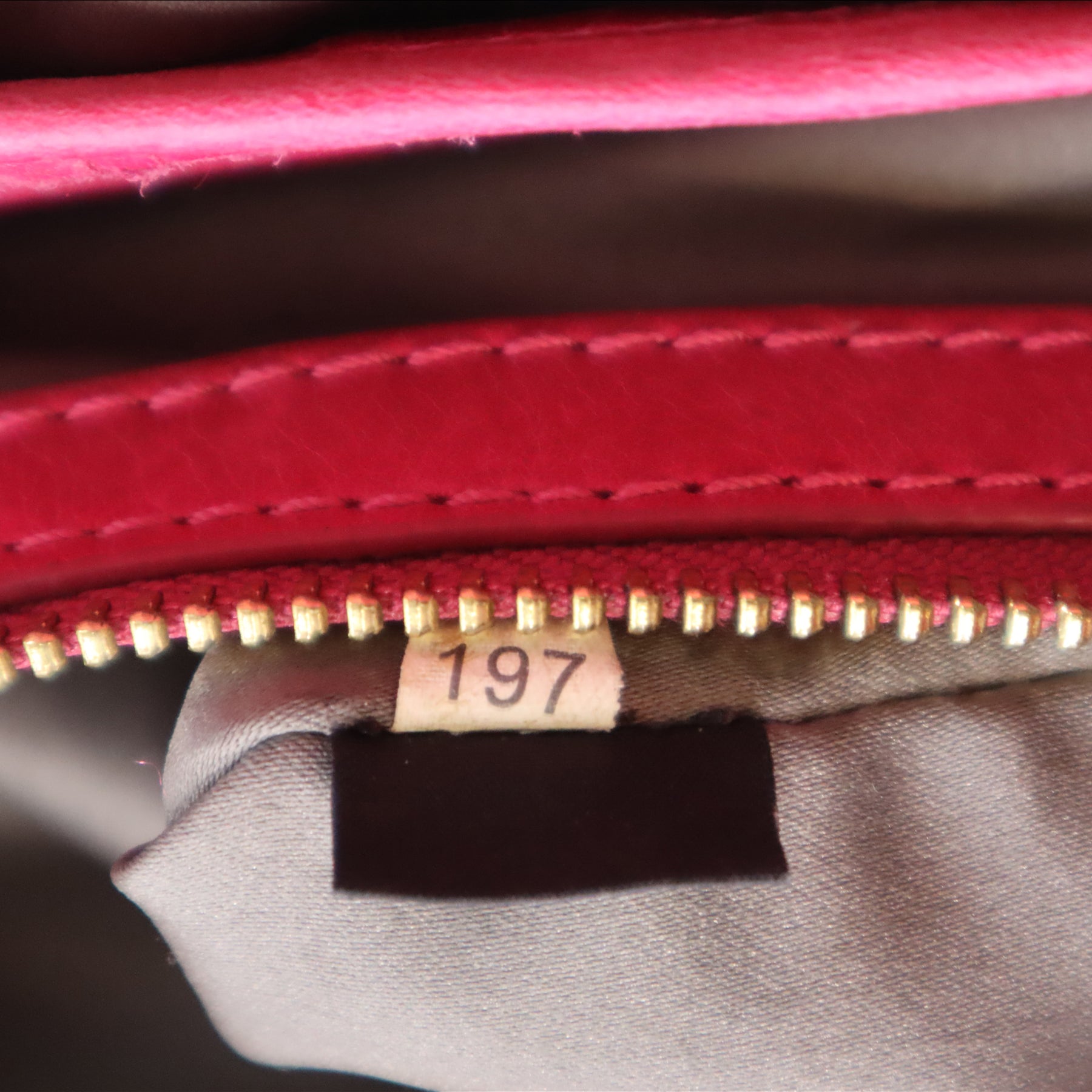 White Tag 197 on interior. Includes removable strap and dust bag.